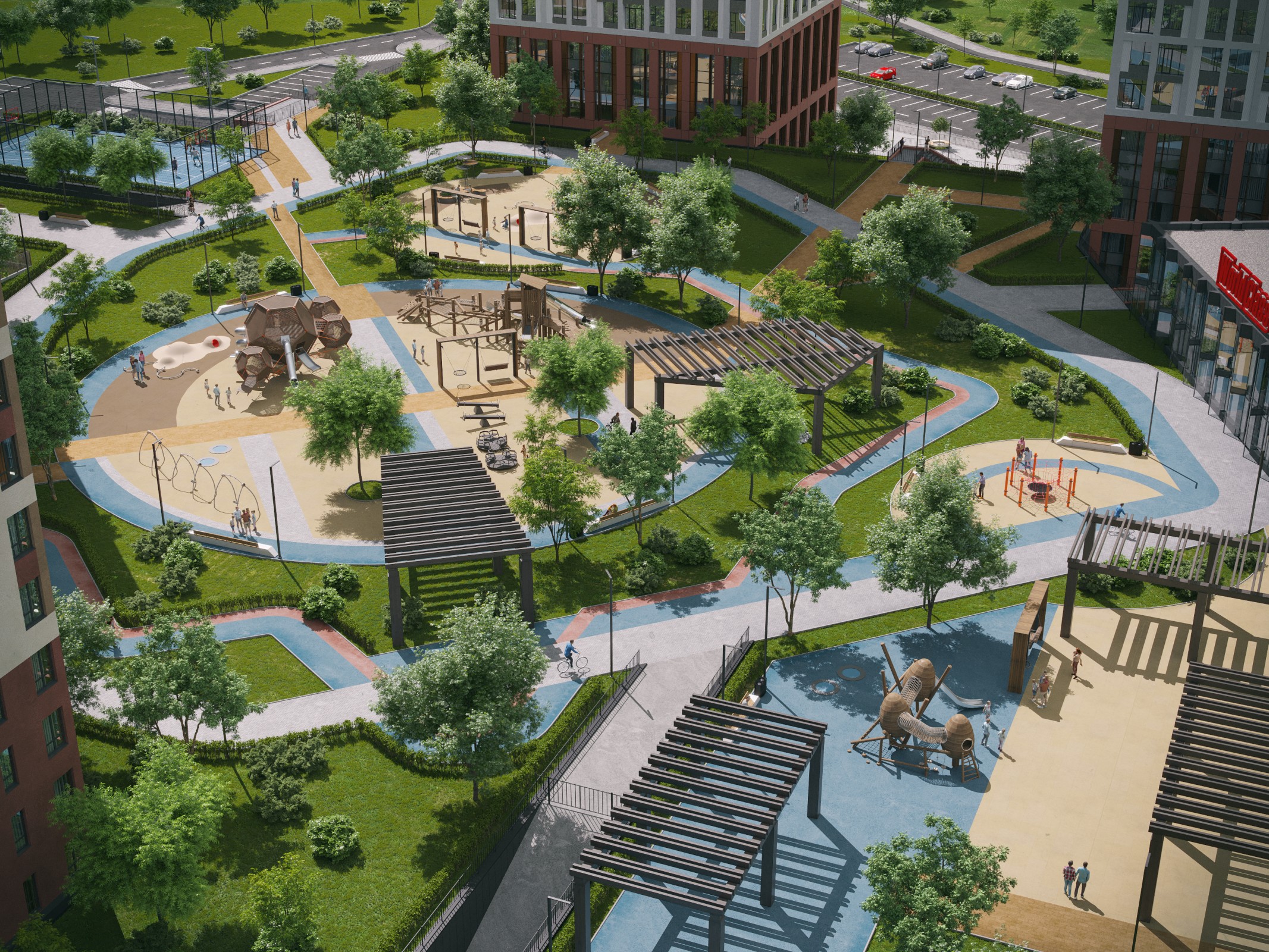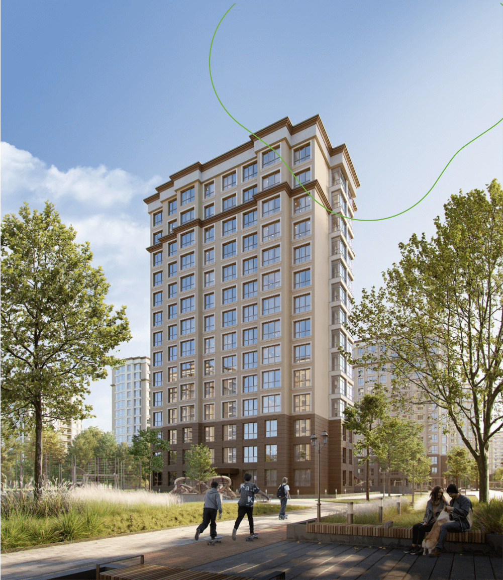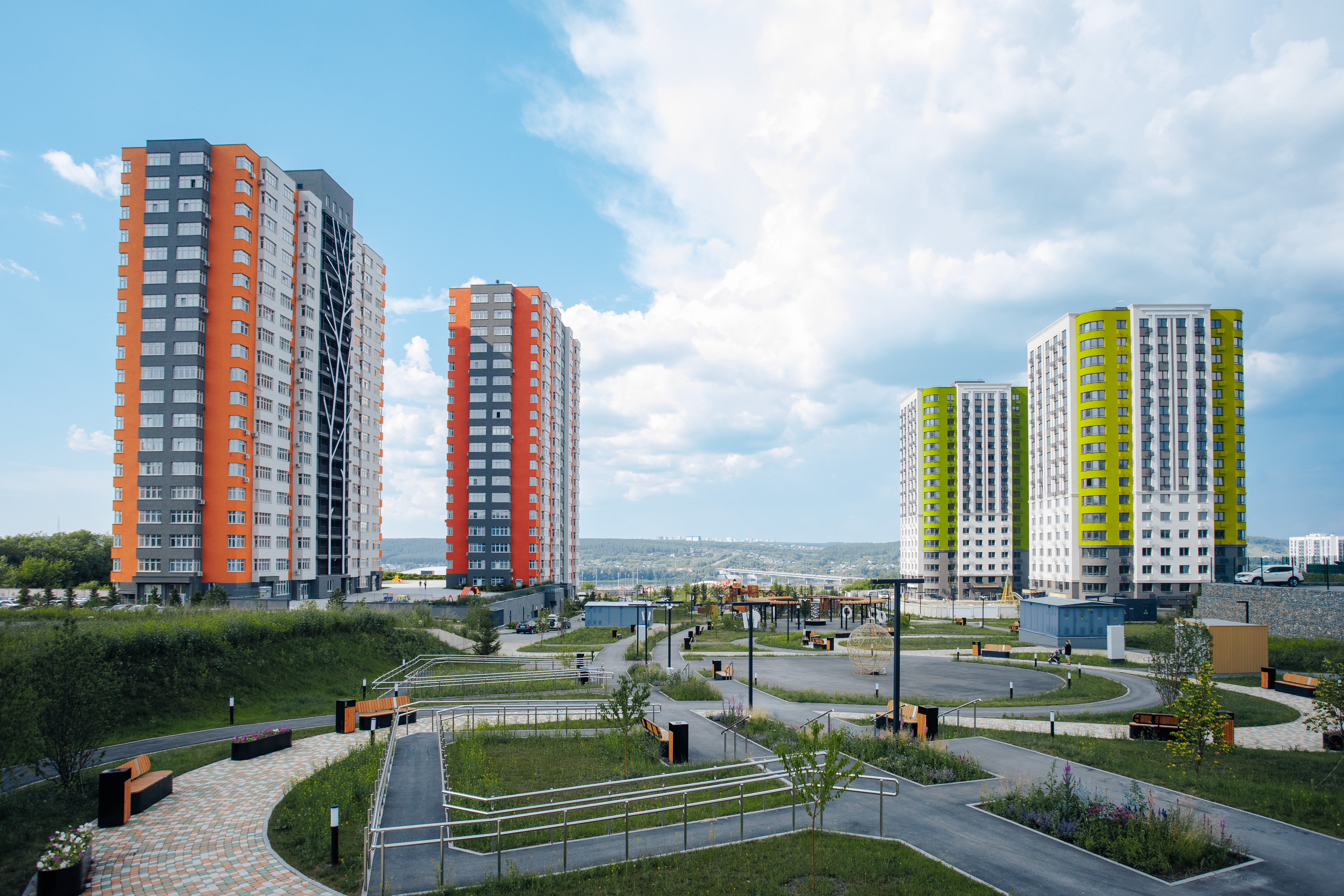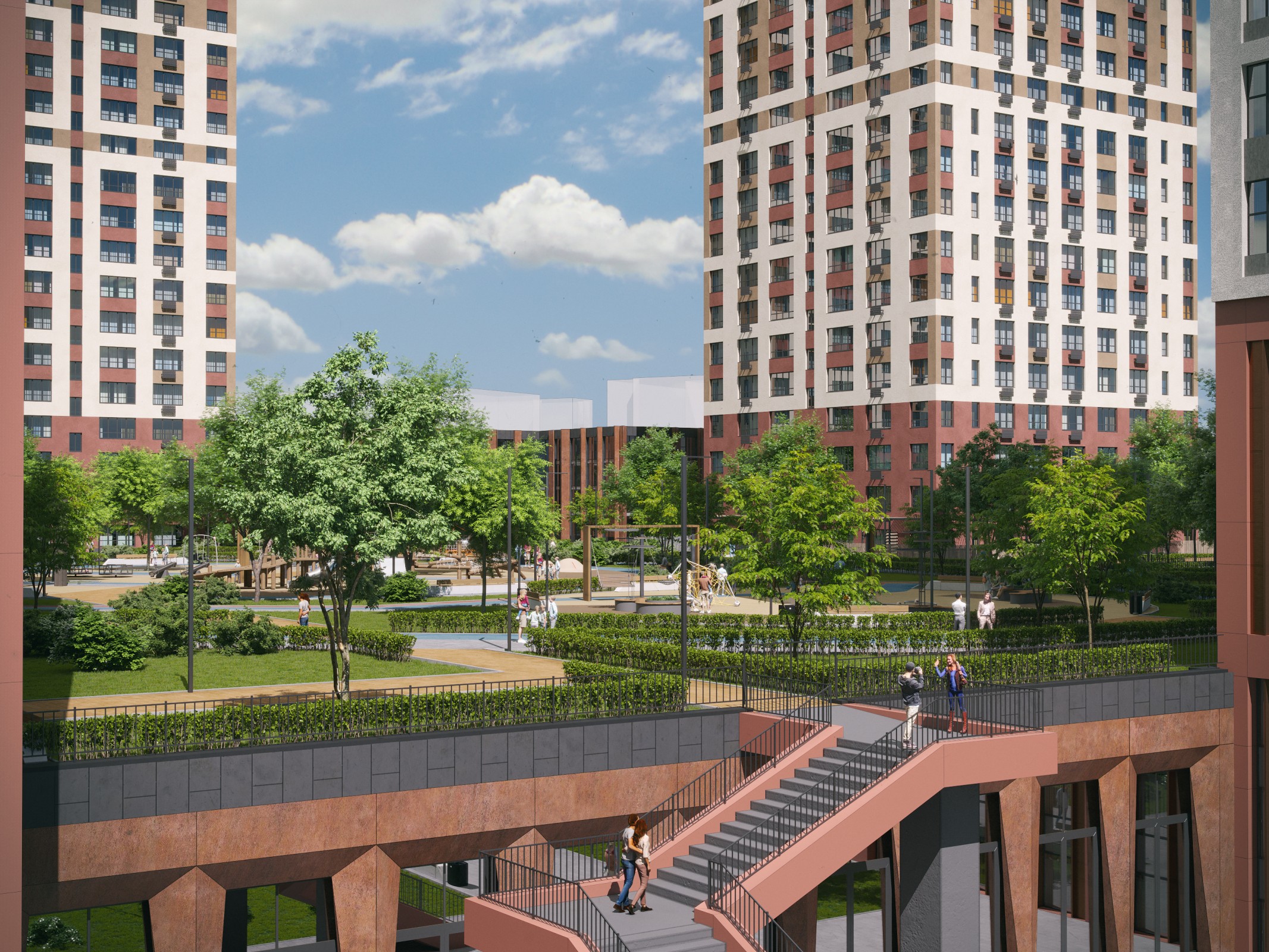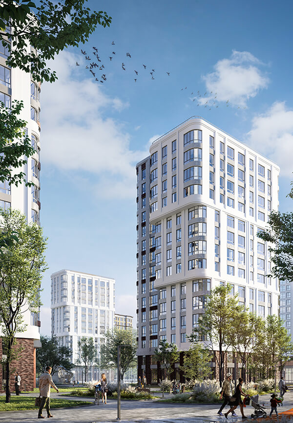 решения и собственный парк на территории формируют отдельный мир в концепции "город-сад".