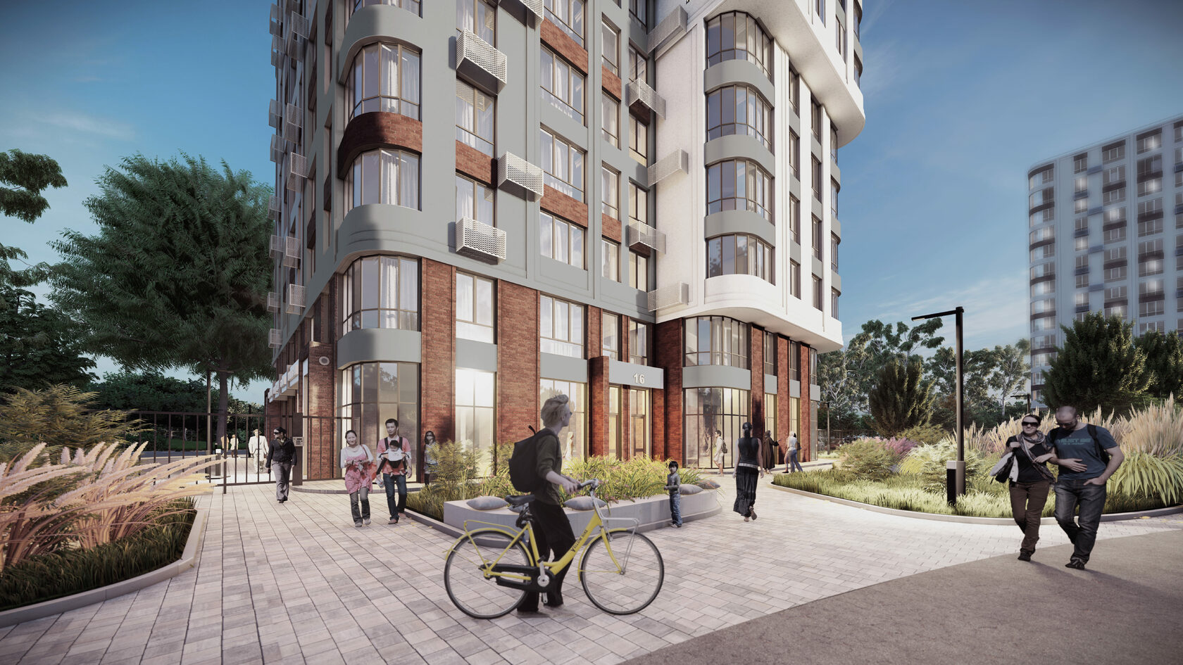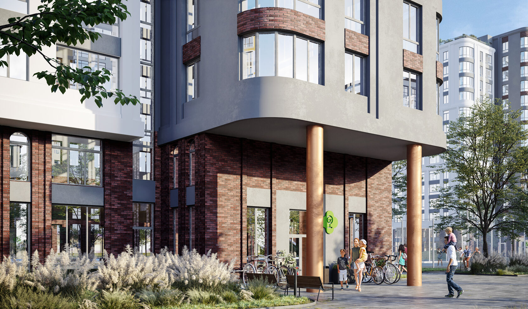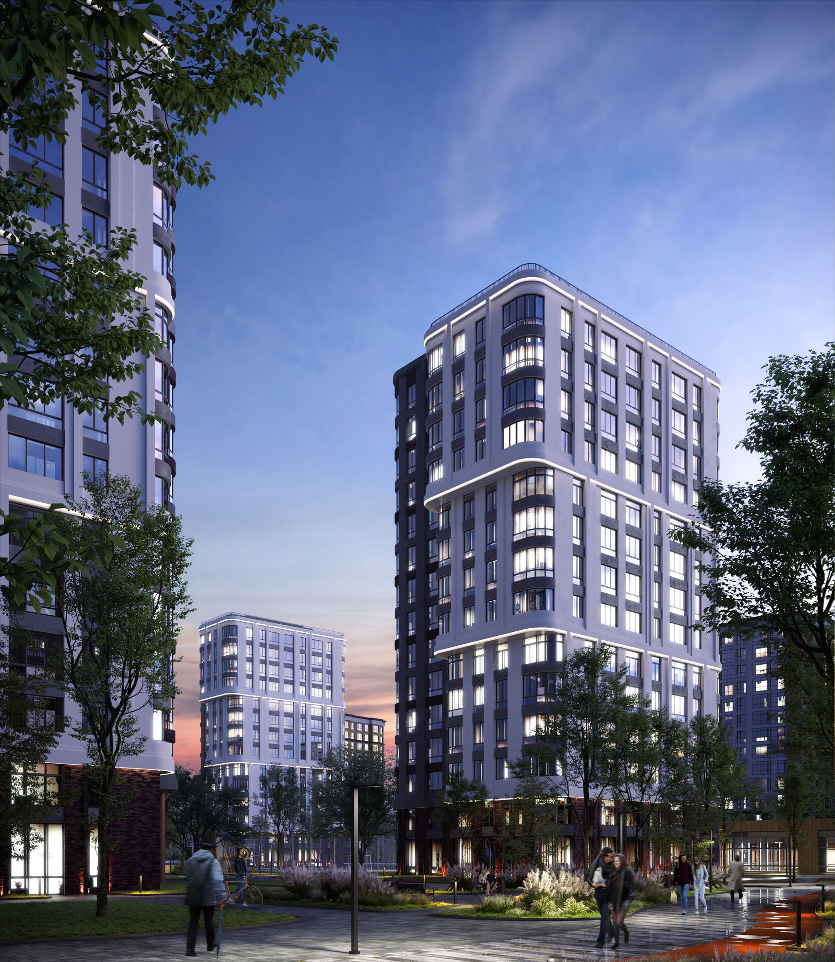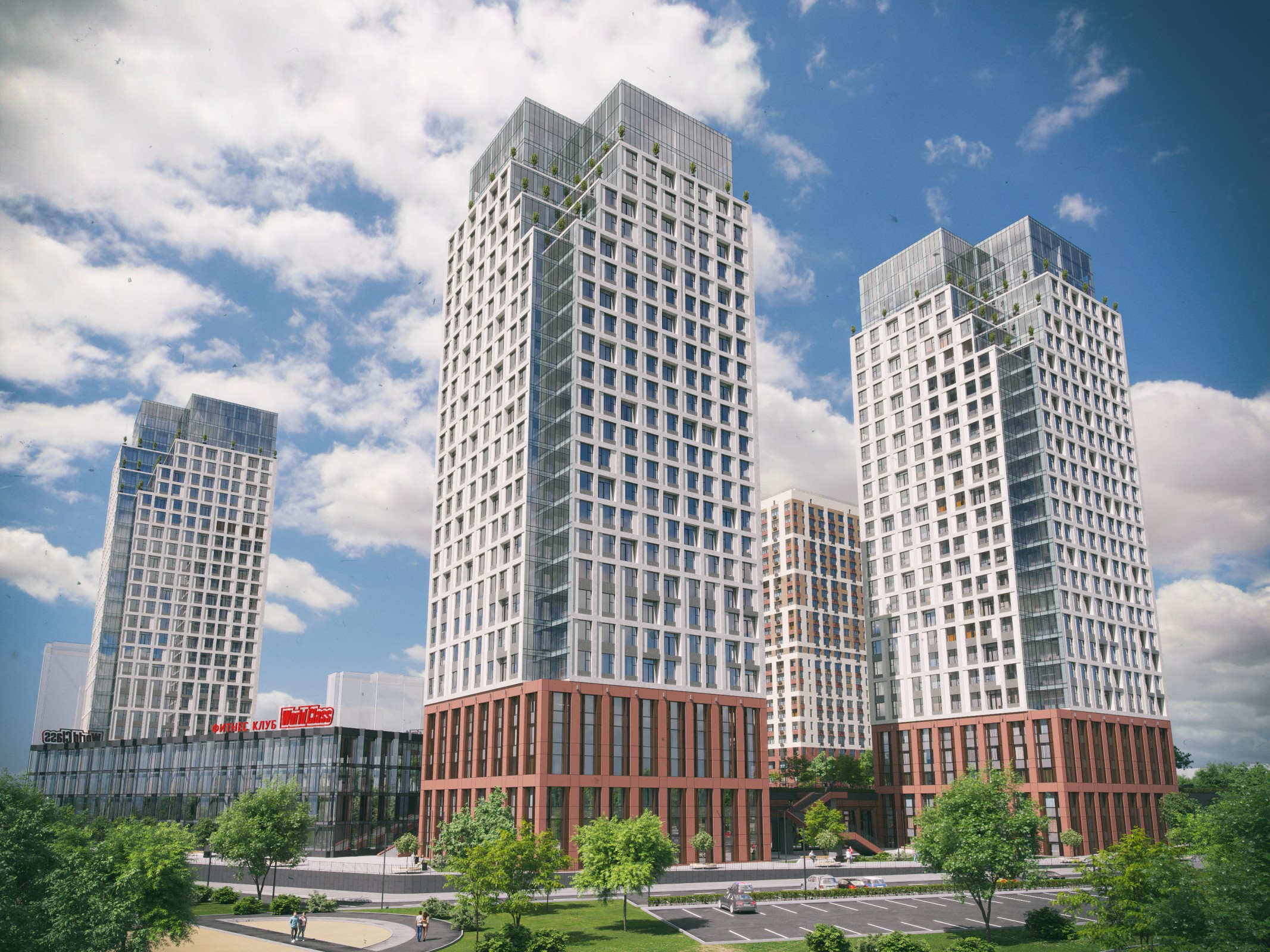 решения и собственный парк на территории формируют отдельный мир в концепции "город-сад".