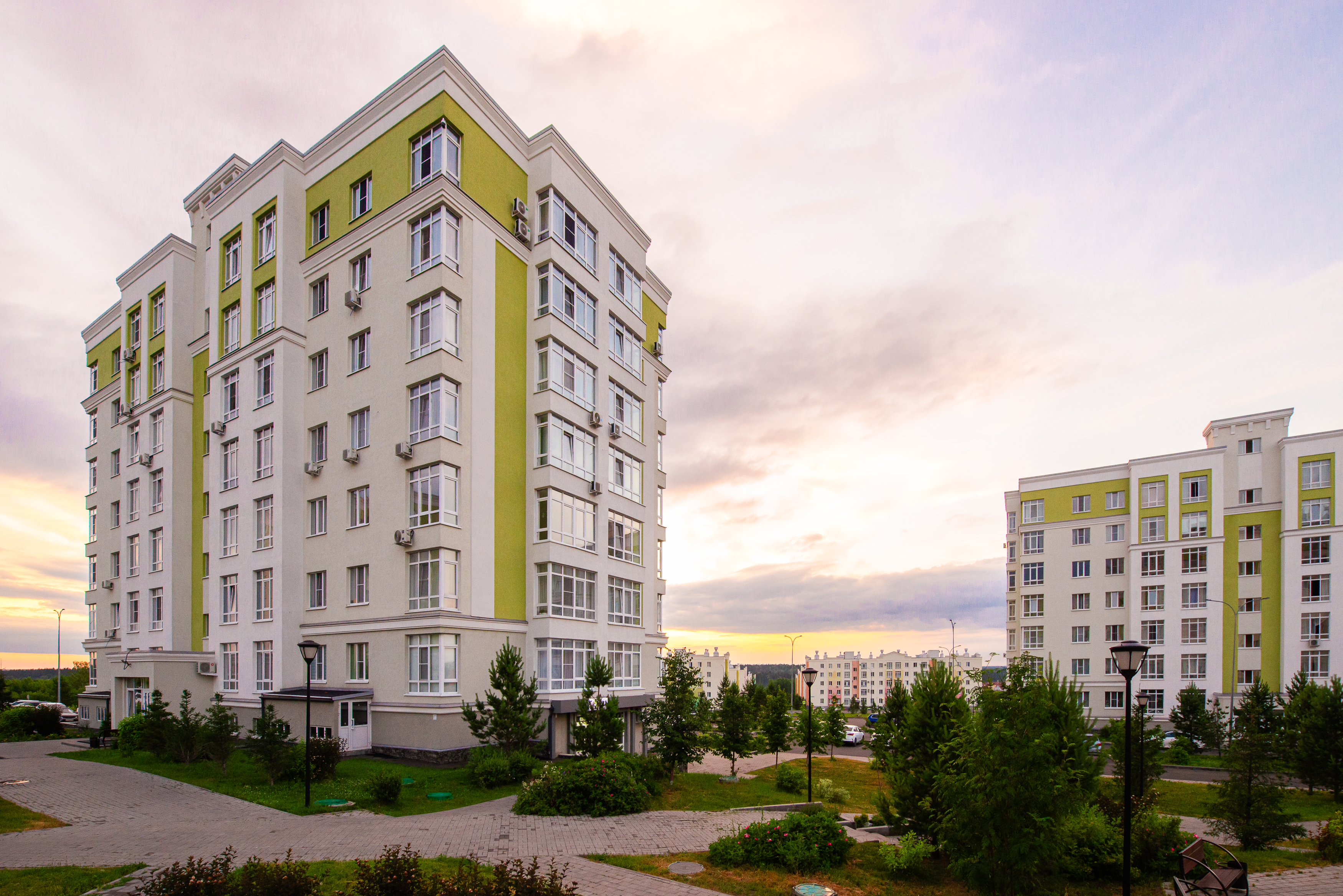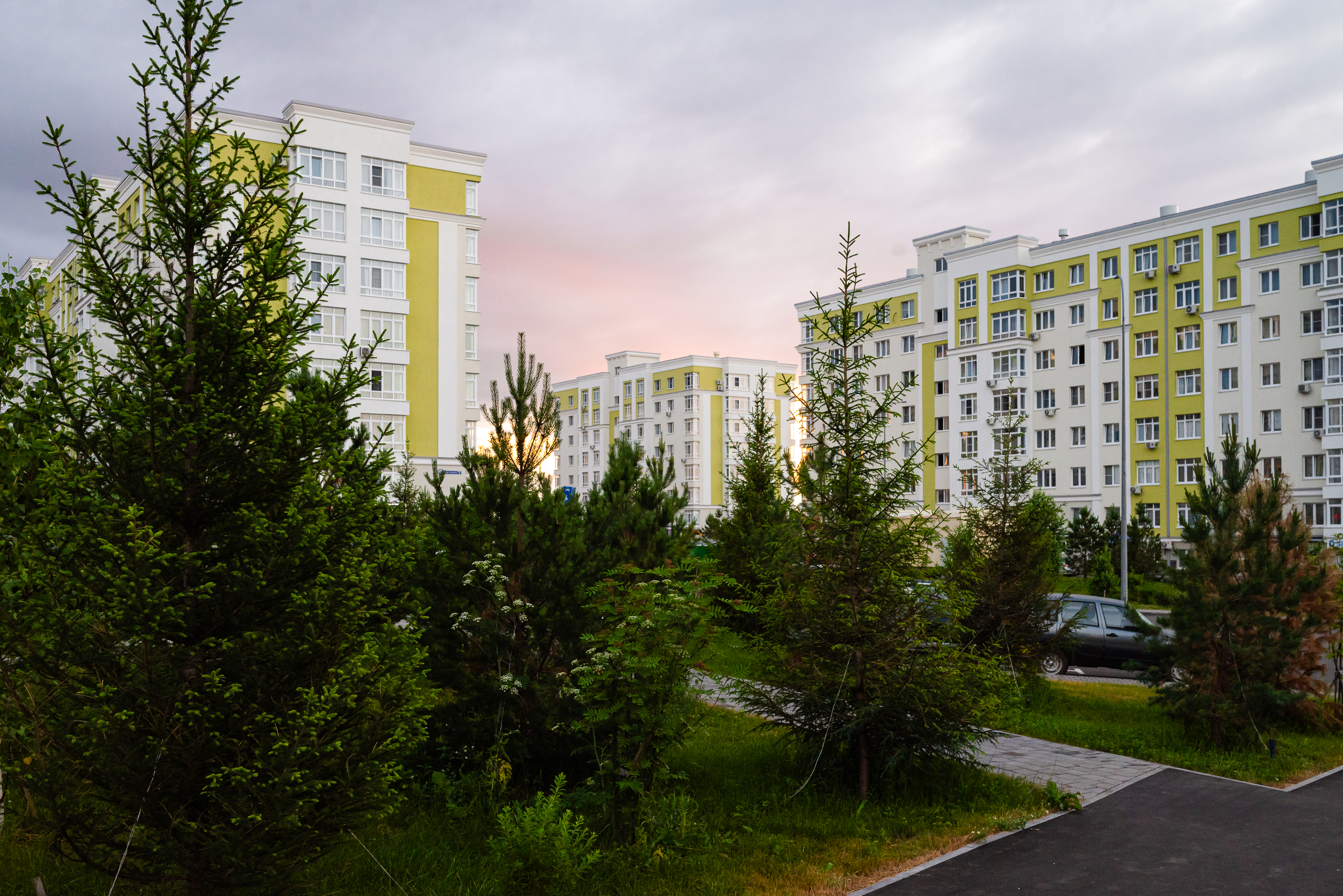 Новый ЖК Ёлки город в лесу состоит из пяти домов высотой 3-4 этажа.